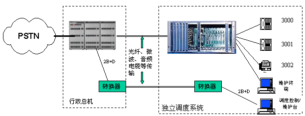 適用范圍:這種應(yīng)用適用于對(duì)電話系統(tǒng)安全性要求嚴(yán)格的場(chǎng)合,如電力系統(tǒng)行政交換機(jī)與調(diào)度交換機(jī)就可以以上述方式實(shí)現(xiàn)備份,從而實(shí)現(xiàn)行政或調(diào)度交換機(jī)某一臺(tái)不能工作時(shí),依然可以通過備份系統(tǒng)打電話。