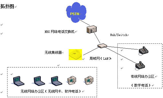 隨著信息時代的來臨,電話、電腦成了辦公領域的重要工具,人們在辦公室通過計算機網(wǎng)絡共享數(shù)據(jù)資源、傳遞數(shù)據(jù)信息,彼此間通過電話言語溝通。在人們享受到高科技帶來的高效率的同時,也感到一些不便,例如計算機網(wǎng)絡、電話網(wǎng)都需要單獨鋪設專用的線路,線路的變更往往是讓人心煩的事情。隨著各公司推出無線局域網(wǎng)絡解決方案(AirConnect)和NBX網(wǎng)絡電話交換機平臺的推出,通過無線局域網(wǎng)絡技術,語音、數(shù)據(jù)兩網(wǎng)合一技術,將電腦、電話機合二為一,同時從線路的束縛中解放出來。人們再也不用擔心布線問題,可以隨處移動辦公,享受無線網(wǎng)絡、無線話音,大大提高人們的辦公效率。