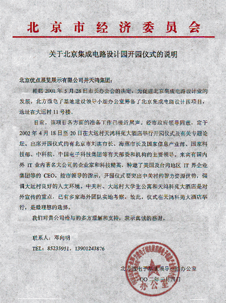 本次大會(huì)組委會(huì)及會(huì)議舉辦地點(diǎn)“天鴻科園大酒店”日前接到北京市人民政府通知,由于“北京集成電路設(shè)計(jì)園開園儀式”將于2002年4月18日至4月20日在大運(yùn)村、天鴻科園大酒店舉行開園儀式及相關(guān)活動(dòng),屆時(shí)將有北京市劉淇市長(zhǎng)、海燕市長(zhǎng)及國(guó)家信息產(chǎn)業(yè)部、國(guó)家科技部、中科院、中國(guó)電子科技集團(tuán)等有關(guān)部委和機(jī)構(gòu)的主要領(lǐng)導(dǎo)出席。按市領(lǐng)導(dǎo)指示,為配合此次重大活動(dòng)圓滿舉行,“首屆呼叫中心運(yùn)營(yíng)管理研討會(huì)”日期更改為2002年4月23日至4月25日在北京天鴻科園大酒店舉行,望有關(guān)參會(huì)單位做好相應(yīng)的后續(xù)工作。特此通告!