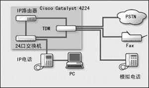 Catalyst 4224結(jié)合了24端口快速以太網(wǎng)交換機(jī)的功能,即利用Catalyst 2600/3600分支機(jī)構(gòu)路由器、8端口模擬語音網(wǎng)關(guān)和縮小的AVVID呼叫管理器等為IP電話提供線路供電能力。所有的部件都集中在一個2U的機(jī)柜內(nèi),它還具有硬件加速的VPN和防火墻的性能。