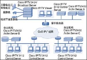Cisco IP/TV可以為企業(yè)提供視頻實況廣播、定時廣播和按需播放功能。如果需要在企業(yè)廣域網(wǎng)上開展視頻會議功能,可以采用思科公司的IP/VC視頻會議解決方案。