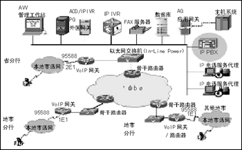 中國工商銀行甘肅省分行客戶服務中心的設計第一期系統(tǒng)容量為蘭州市為60路中繼接入,其他地(市)根據客戶容量分別采用30路中繼接入或12路中繼接入。語音接入都采用E1數字中繼接入方式,以后可以很方便地升級。省行IP