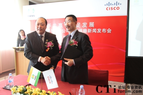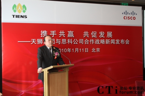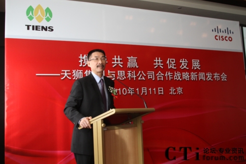 CTI論壇(ctiforum)1月12日消息(記者 張塵):2010年1月11日,北京——“攜手共贏 共促發(fā)展——天獅集團與思科公司戰(zhàn)略項目新聞發(fā)布會”在北京召開,雙方共同宣布,天獅集團國際健康產(chǎn)業(yè)園網(wǎng)絡平臺成功啟用,并正式達成合作戰(zhàn)略。天獅集團董事長兼總裁李金元先生與思科全球副總裁、思科中國副董事長兼總裁林正剛先生出席新聞發(fā)布會,并進行簽約儀式。通過本次強強聯(lián)合,思科面向服務的網(wǎng)絡架構(gòu)(SONA)全面部署于天獅集團國際健康產(chǎn)業(yè)園,為天獅集團業(yè)務的穩(wěn)定持續(xù)發(fā)展以及信息化水平的進一步提升提供了可靠保證,同時也為雙方未來更深層次的合作打下了堅實的基礎。