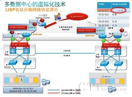 今天我們討論的主要是在虛擬化環(huán)境中如何通過網(wǎng)絡協(xié)議精確定位虛機的具體位置,LISP 解決方案解決了虛機移動領(lǐng)域的一大難題,該功能允許一個子網(wǎng)的虛擬機成員,當虛擬移動到網(wǎng)絡任何地方,同時保留其IP地址不變,無需在主機上的任何變化,但網(wǎng)絡訪問可以定位其精確位置并實現(xiàn)最優(yōu)路由,同時保持網(wǎng)絡的穩(wěn)定性和高可擴展性。