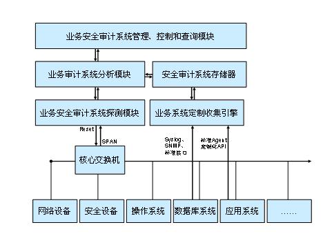 圍繞《薩班斯法案》第404條款的基本要求,結(jié)合運營商的業(yè)務(wù)支撐系統(tǒng)運維特點,面向業(yè)務(wù)系統(tǒng)的安全審計系統(tǒng)一般應(yīng)具備以下功能: