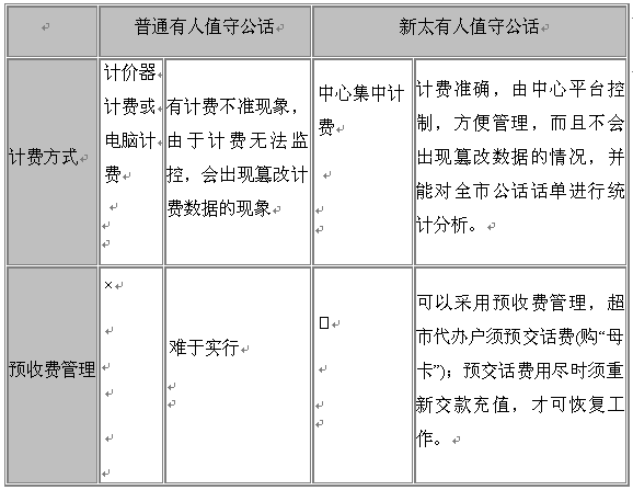 長期以來,普通有人值守公話采用計(jì)費(fèi)器+電話的方式進(jìn)行通話和計(jì)費(fèi),這種方式的弊端是費(fèi)率固話在計(jì)費(fèi)器上,費(fèi)率、時(shí)長、話單等都在計(jì)費(fèi)器本地控制,運(yùn)營商無法了解各公話的計(jì)費(fèi)情況,公話代辦戶不按計(jì)價(jià)器亂收費(fèi)、篡改計(jì)費(fèi)器電路以達(dá)到多收費(fèi)的現(xiàn)象時(shí)有發(fā)生,嚴(yán)重侵害消費(fèi)者利益,由此帶來的大量計(jì)費(fèi)糾紛又影響了運(yùn)營商聲譽(yù)和管理,集中管理控制有人值守公話勢在必行。