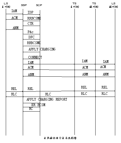 ⑥ SSP按照SCP返回的被叫號(hào)碼及路由信息,與被叫側(cè)TS、LS局進(jìn)行IAM、ACM和ANM(應(yīng)答消息)等ISUP信令交互;