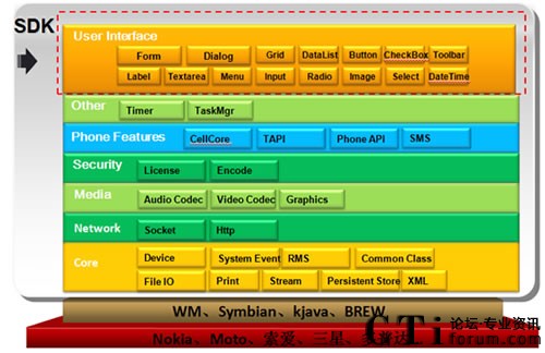 據(jù)新太科技內(nèi)部相關(guān)人員介紹,mWAY的技術(shù)架構(gòu),一方面可以支持電信網(wǎng)絡(luò)各種各樣的接入,保證和運(yùn)營商已有的網(wǎng)絡(luò)的互聯(lián)互通,同時(shí)也支持和移動(dòng)互聯(lián)網(wǎng)手機(jī)之間的連接,支持相關(guān)音頻、視頻的呼叫、傳送。業(yè)務(wù)接口可以給第三方應(yīng)對(duì)研發(fā)需求,手機(jī)終端有相關(guān)的引擎,滿足手機(jī)終端的業(yè)務(wù)研發(fā)的需求,這部分有一個(gè)手機(jī)客戶端軟件,是一個(gè)移動(dòng)性的引擎。這個(gè)引擎移植在手機(jī)終端客戶端上,給上層提供統(tǒng)一的解析開放系統(tǒng)。