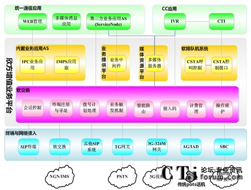 可在此基礎(chǔ)上提供形成了多媒體呼叫中心、IPPBX、IPCentreX、IVR/IVVR二次開發(fā)平臺(tái)、一號(hào)通、即時(shí)消息/呈現(xiàn)等一系列的重量級(jí)新型業(yè)務(wù),同時(shí)其所提供的業(yè)務(wù)開發(fā)能力允許第三方自主的研發(fā)和部署的業(yè)務(wù)應(yīng)用,滿足業(yè)務(wù)應(yīng)用的個(gè)性化需求。