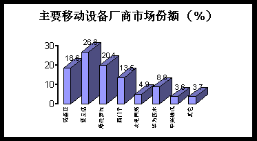 。3)市場(chǎng)趨勢(shì)及預(yù)測(cè): 2001年移動(dòng)網(wǎng)絡(luò)設(shè)備市場(chǎng)預(yù)計(jì)總體保持快速增長(zhǎng),在GSM領(lǐng)域,中國(guó)移動(dòng)25城市GPRS實(shí)驗(yàn)網(wǎng)的開通,對(duì)移動(dòng)互聯(lián)將是實(shí)質(zhì)性的推動(dòng),WAP熱炒冷賣的局面會(huì)有所改變。各大設(shè)備廠商受此影響將沉浮巨大,愛立信、諾基亞、摩托羅拉、華為技術(shù)等公司將順勢(shì)擴(kuò)大市場(chǎng)份額,市場(chǎng)集中度進(jìn)一步提高。