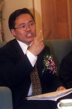 CTI論壇斑竹雙子星(趙棟偉)正為現(xiàn)場(chǎng)幸運(yùn)觀眾頒獎(jiǎng)