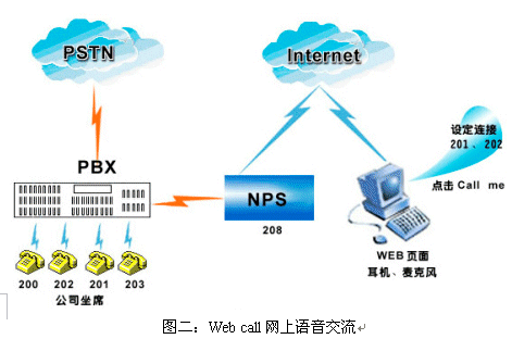 “無聲”一直是企業(yè)電子商務(wù)的最大遺憾,因為“無聲”,許多消費者卻步了。怎樣把語音和Web在網(wǎng)絡(luò)上結(jié)合起來?這正是星際網(wǎng)絡(luò)推出的web call系統(tǒng)(如圖二所示)的目標。消費者點擊點擊呼叫按鈕,就可以通過麥克風與客服代表通話。并且網(wǎng)上來電與普通來電一樣,經(jīng)過交換及排隊處理,同樣支持來電資料彈出。對客戶來說,只需要一臺接入Internet的多媒體電腦和免費的客戶端軟件就可實現(xiàn)Web瀏覽和交談功能。這個功能不僅可以讓客戶獲得更好的售后服務(wù),在售前服務(wù)中也可以發(fā)揮巨大效用。家電產(chǎn)品的特性使得消費者在購買之前必須對產(chǎn)品有充分了解,在網(wǎng)站瀏覽中通過與客戶代表的交流增進產(chǎn)品了解,刺激其購買欲望。讓家電行業(yè)的網(wǎng)上商務(wù)的更有效。