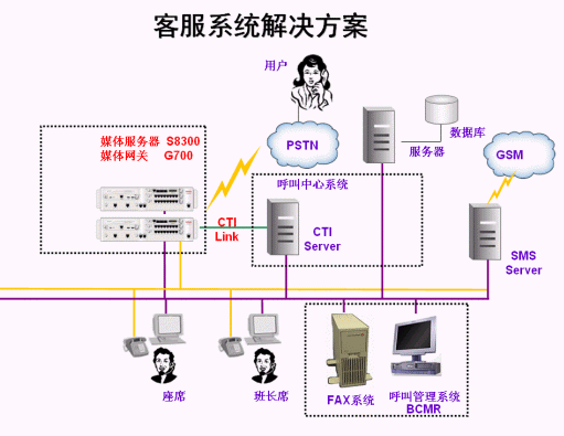 - 采用AVAYA S8300交換機(jī)做為客戶服務(wù)中心的核心電話接入平臺,系統(tǒng)中配置CTI接口模塊和內(nèi)置的自動(dòng)呼叫分配軟件包。