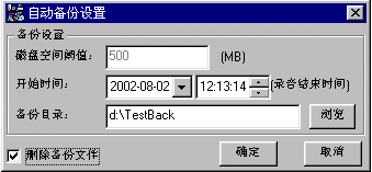 自動備份由事先設定的磁盤空間報警閾值觸發(fā),它會發(fā)出信息提示或聲音提示,然后將用戶事先確定的時間范圍內的錄音文件全部備份到客戶機硬盤、磁盤陣列或其他記錄介質上,并且可以自動刪除系統(tǒng)硬盤上已經被備份出來的文件。