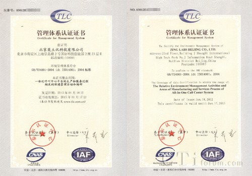 北京英立訊科技有限公司于2012年2月順利通過ISO14001環(huán)境管理體系認(rèn)證,ISO14001環(huán)境管理體系標(biāo)準(zhǔn)是ISO14000系列標(biāo)準(zhǔn)中一項重要標(biāo)準(zhǔn)。