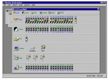 VoiceMaster的Monitor Workstation是一個為提供即時系統(tǒng)功能和動態(tài)信息而設(shè)計的通用工具程序。監(jiān)控工作站(Monitor Workstation)顯示系統(tǒng)組件和系統(tǒng)操作特性、通訊線路、主控計算機的連接情況、不間斷電源(UPS)及磁盤容量等各自實時狀態(tài)的圖形簡報。當(dāng)有問題或出錯時產(chǎn)生報警及警告信息來通知系統(tǒng)管理員。