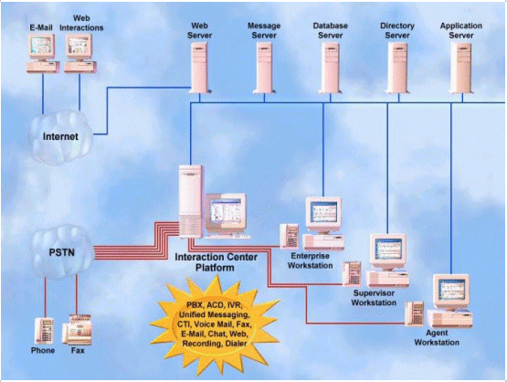 客戶互動中心系統CIC (Customer Interaction Center)是典型的第四代呼叫中心產品,基于開放的通信服務器平臺,采用一體化(All-In-One)的結構,一臺服務器、一個系統集成了交換機、排隊機、自動語音應答、傳真、語音留言信箱和語音記錄等多種功能。這種呼叫中心采用完全事件驅動的核心,模塊化的結構,與接入和交換技術無關,明顯具有結構簡單、建設周期短、性能價格比高、配置靈活易于升級擴充、管理便捷易于二次開發(fā)和支持網絡和多媒體接入和統一排隊等特點。這種呼叫中心更貼近于應用,采用開放的軟件解決方案,將呼叫中心的應用與網絡的基礎結構分離,符合當前網絡時代和電子商務的需要,使客戶可以一次性購買適應其不斷發(fā)展變化的業(yè)務需求,使其專注于業(yè)務本質,即關鍵業(yè)務流程的優(yōu)化,而不必把時間花費在傳統的呼叫中心無法避免的冗繁的系統集成、業(yè)務定制和修改上。CIC適應目前和未來的網絡和交換基礎結構,如內置語音卡、集成傳統交換機系統、集成Cisco AVVID網絡交換系統以及支持未來的基于會話初始協議SIP的交換結構等等。正因為如此,基于CIC系統不但適合建設集中式呼叫中心系統,也非常適合建設分布式呼叫中心系統。