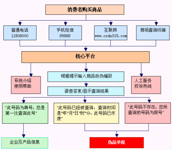 在國家計(jì)委和國務(wù)院信息辦的直接領(lǐng)導(dǎo)下,以及在質(zhì)檢、工商、醫(yī)藥等職能部門的配合下,國家信息中心正式啟動(dòng)國家級(jí)防偽工程 -- 數(shù)碼防偽公共服務(wù)系統(tǒng)建設(shè)。該系統(tǒng)綜合利用了當(dāng)前最先進(jìn)的技術(shù),集CTI技術(shù)、語音技術(shù)、網(wǎng)絡(luò)通信技術(shù)、計(jì)算機(jī)加密技術(shù)、以及大型數(shù)據(jù)庫技術(shù)于一體,服務(wù)于產(chǎn)品防偽和打假,支持企業(yè)采用現(xiàn)代信息技術(shù)開展防偽工作,提高防偽效能,并為廣大消費(fèi)者提供安全和質(zhì)量的保障。