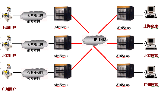 奧迪堅的分布式呼叫中心體系,可以最簡潔的組網(wǎng),來提供最經(jīng)濟、最實用的解決方案,同時完全覆蓋甚至超過基于交換機的技術(shù)性能和功能。客戶所需要做的只是將奧迪堅通訊服務器與Internet相連接即可。