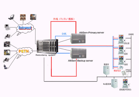 上海市城建12319是一個(gè)以12319為一級(jí)網(wǎng)絡(luò)中心、16個(gè)不同職能部分為二級(jí)網(wǎng)絡(luò)中心、搶修維修執(zhí)行機(jī)構(gòu)或者部門為三級(jí)網(wǎng)絡(luò)的呼叫中心,完全支持各級(jí)網(wǎng)絡(luò)之間數(shù)據(jù)和語(yǔ)音信息的同步轉(zhuǎn)移。奧迪堅(jiān)針對(duì)城建12319的建設(shè),除了采用先進(jìn)的分布式技術(shù)有效地把16條不同的城建事業(yè)服務(wù)統(tǒng)一到12319語(yǔ)音平臺(tái),構(gòu)建了一個(gè)完整的"市民→熱線中心→責(zé)任單位→市民"的閉路循環(huán)的城市建設(shè)管理工作的服務(wù)熱線;而且,其安全保護(hù)冗余切換系統(tǒng)成為上海市12319呼叫中心中保證系統(tǒng)安全運(yùn)行的重要選擇。上海市12319冗余系統(tǒng)包括AltiServ主機(jī)和備機(jī),以及一個(gè)A/B線路切換器,正常情況下,A/B切換器將所有線路與主機(jī)保持連接,所以電話處理由主機(jī)完成,而備機(jī)則實(shí)時(shí)監(jiān)測(cè)主機(jī)并同步配置信息。如果主機(jī)的服務(wù)意外停止了或損壞了,服務(wù)將會(huì)在幾秒鐘內(nèi)切換到備機(jī)上,不會(huì)影響到12319正常業(yè)務(wù)的開(kāi)展,有效地防止系統(tǒng)意外事故造成的數(shù)據(jù)的丟失和服務(wù)的中斷,保障了12319系統(tǒng)的穩(wěn)定性和服務(wù)的連續(xù)性。
