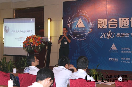 與會期間,奧迪堅大區(qū)銷售總監(jiān)廖澄和奧迪堅技術(shù)總監(jiān)強(qiáng)雄飛發(fā)表了“下一代融合型通信平臺介紹”、“ 下一代呼叫中心解決方案介紹”以及“奧迪堅全系列自主融合通信產(chǎn)品介紹”主題演講。
