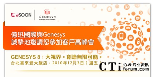 持續(xù)優(yōu)化企業(yè)績(jī)效及培養(yǎng)意見領(lǐng)袖,都是協(xié)助我們?cè)谂_(tái)灣的用戶與其客戶有更佳交流往來的重要作法,因此,我們特別籌辦了‘客戶高峰會(huì)’,全面邀集來自Genesys新加坡、香港及中國的專家和同儕與您面對(duì)面,進(jìn)行互動(dòng)的知識(shí)分享與意見交換。