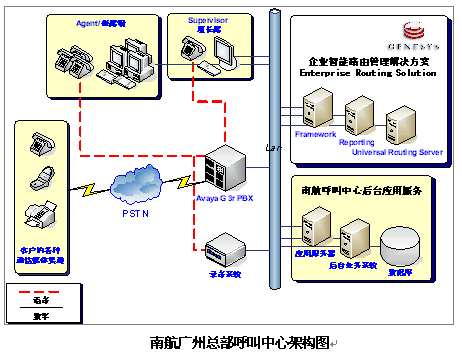 始自2002年eSOON & Genesys 成為南方航空的CTI軟件提供商,為其打造全國客服中心網(wǎng)絡(luò)。 廣州是南方航空公司的總部所在,自然就成為全國網(wǎng)絡(luò)的中心;除廣州以外,南方航空還擁有全國10個(gè)地區(qū)的航線基地,絕大部分基地均為省會(huì)城市或主要商業(yè)中心。到目前為止,作為網(wǎng)絡(luò)據(jù)點(diǎn)的貴陽、長沙、烏魯木齊、沈陽、深圳、珠海、汕頭以及海口等分點(diǎn)已成功投入使用,另湖北、河北等省份的中心城市也在規(guī)劃階段中。