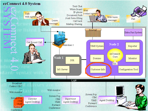 作為一種成功的企業(yè)應(yīng)用案例,這種方案已經(jīng)成功的應(yīng)用在我們的企業(yè)級多媒體呼叫中心 ezConnect產(chǎn)品中,該產(chǎn)品能同時(shí)處理傳統(tǒng)呼叫中心的電話請求和以互聯(lián)網(wǎng)為中心的Web 請求,同時(shí)配備多種實(shí)時(shí)交流手段,軟電話功能和基于web 的文本交談,圖片共享,白板,文檔推送,IP電話,UMS, SMS 和WAP 等為客戶提供很方便且實(shí)用的功能, 并且提供基于特定技能路由的分配器,同時(shí)處理電話和Web請求。而且同時(shí)支持多種語言并提供統(tǒng)一的配置工具。當(dāng)該請求到達(dá)座席時(shí),在座席的桌面上彈出客戶的基本信息和交易信息,座席可以根據(jù)這些信息給客戶提供更加個性化的服務(wù)。本文就針對該產(chǎn)品的實(shí)際開發(fā)和實(shí)現(xiàn), 以及工作中的一些感想來與大家共同探討客戶信息管理的應(yīng)用和前景。