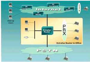 對(duì)于普通的傳真機(jī),ExtraFax Router是更合算的選擇。它不僅不需要額外的網(wǎng)關(guān)設(shè)計(jì),而且它還可以自動(dòng)計(jì)算長(zhǎng)途計(jì)費(fèi)單。最重要的是它可以自動(dòng)尋找最佳路徑 (即最節(jié)省的方式) 通過(guò)Internet/Intranet發(fā)送傳真,同時(shí)ExtraFax Router基于DID/DTMF/CSID/PORT/Channel的自動(dòng)分發(fā)到個(gè)人的傳真信箱也降低了人工管理的費(fèi)用并能實(shí)現(xiàn)傳真的安全性。