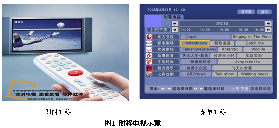 即時(shí)時(shí)移指用戶在觀看直播電視的同時(shí),支持暫停、快退、快進(jìn)、定位、切換、狀態(tài)顯示、時(shí)間顯示等操作。使用戶不再受節(jié)目播出時(shí)間的限制,而且可以直接挑選自己喜歡觀看的節(jié)目,跳過不感興趣的節(jié)目。通過時(shí)移電視(Time-shifted