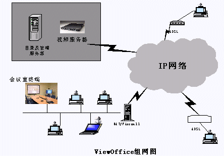 如下圖所示,ViewOffice系統(tǒng)組網(wǎng)有以下特點: