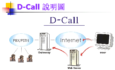 D-CALL指的是”Direct Call on Web”,提供電子商務中客戶與企業(yè)間網(wǎng)上實現(xiàn)網(wǎng)上實時語音互動平臺。