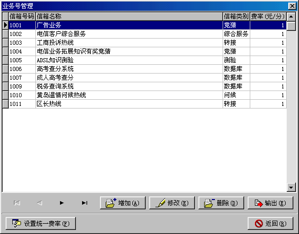 。。方便電信企業(yè)開(kāi)展諸如類160/168業(yè)務(wù)、呼叫中心外包、有償信息服務(wù)、課題調(diào)查/客戶委托調(diào)查、電信公告/客戶委托公告、語(yǔ)音/傳真信箱、電話秘書(shū)臺(tái)、商家廣告等增值業(yè)務(wù)服務(wù)。