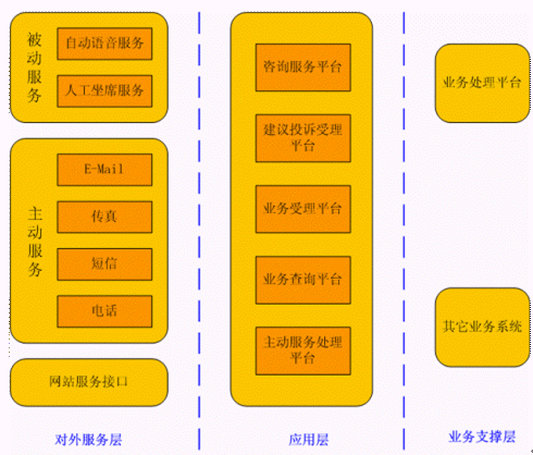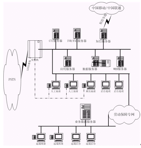 該系統(tǒng)提供5*8小時人工服務和7*24小時自動服務,提供政策法規(guī)咨詢、辦事指南、信息查詢、受理投訴舉報、進行社會調(diào)查五大功能;預留電話職介和受理勞動保障相關電話業(yè)務兩大功能,同時提供輔助功能,包括:資料庫建設,信息定制與發(fā)布,內(nèi)部管理等。