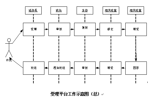 受理平臺包括:投訴受理、建議受理和疑難受理,數(shù)據(jù)扭轉(zhuǎn)都是工作流。所以系統(tǒng)設計時,我們采用工作流的實現(xiàn)方式,自定義數(shù)據(jù)類型、數(shù)據(jù)節(jié)點以及數(shù)據(jù)流向。下面列出一種常用的業(yè)務受理模式,說明業(yè)務的實現(xiàn)方法。