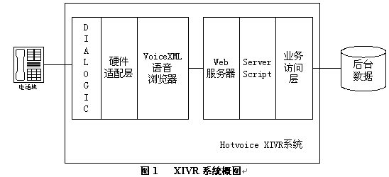 采用Hotvoice XIVR系統(tǒng)實現(xiàn)的新業(yè)務(wù)可以采用任何Web技術(shù)方便地和原有數(shù)據(jù)系統(tǒng)結(jié)合。用戶可以根據(jù)業(yè)務(wù)需求編寫靜態(tài)voiceXML腳本,或采用ASP/JSP/PHP等動態(tài)生成voiceXML腳本;與后臺數(shù)據(jù)系統(tǒng)間可以采用數(shù)據(jù)庫訪問,或采用XML/HTTP/DCOM或其他協(xié)議訪問。