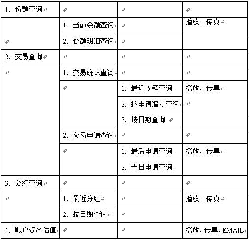 ·統(tǒng)一標(biāo)準(zhǔn):統(tǒng)一基金服務(wù)熱線的業(yè)務(wù)管理、業(yè)務(wù)處理和服務(wù)質(zhì)量體系標(biāo)準(zhǔn)。