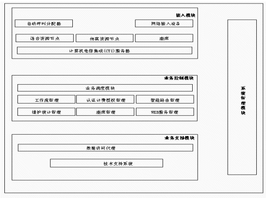 系統(tǒng)響應(yīng)時間:采用中國1號信令時,在用戶撥完最后一個號碼后聽到第一句語音提示之前的間隔時間不超過2s,采用7號信令時則不超過1s,從占用座席到屏幕顯示的接續(xù)時間<0.5s。