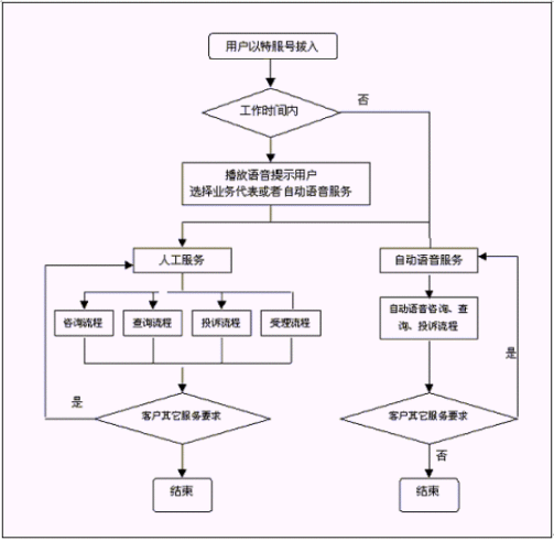 業(yè)務(wù)受理時限設(shè)置:對各類用戶進(jìn)行分類分級、對數(shù)據(jù)庫中的用戶信息進(jìn)行維護(hù)、對不同的用 戶設(shè)定不同的服務(wù)等級:特別服務(wù)、優(yōu)先服務(wù)和統(tǒng)一服務(wù)、對用戶的呼叫根據(jù)優(yōu)先級進(jìn)行排隊(duì)。