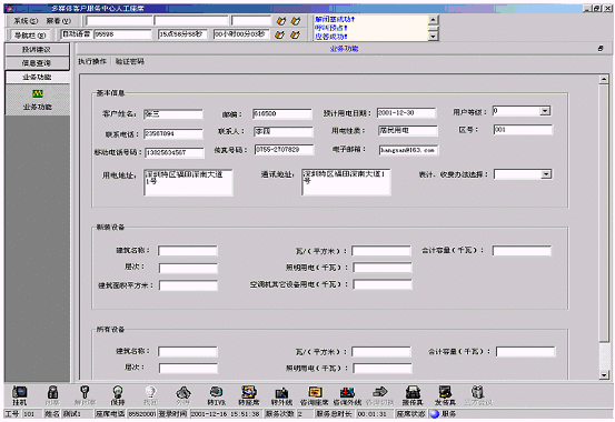 客戶信息包括客戶編號、客戶名稱、聯(lián)系電話、地址、所屬地區(qū)、地區(qū)編號、用戶人口數(shù)、樓層等多項,接聽客戶呼入電話,由座席代表記錄信息形成檔案,也可采用更為主動的呼出方式來確認、核實、補充檔案。