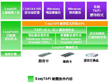 | 軟件套件名稱(chēng) | EasyTAPI | CT-Access | Native API |