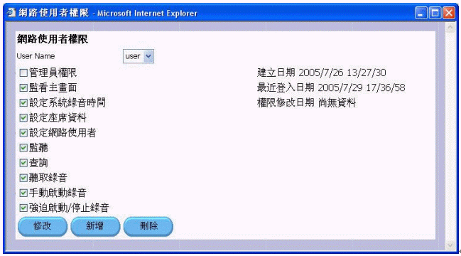 使用者權(quán)限:可在線創(chuàng)建新用戶,并可設定多級權(quán)限。