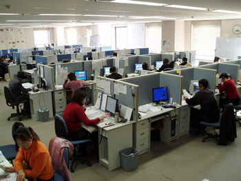 當(dāng)你站在這布局緊湊但井井有條、具有典型日式風(fēng)格的辦公大廳里,看到這些彬彬有禮的座席代表,耳邊又不時傳來各種聲調(diào)的日語時,你會毫不懷疑地認(rèn)為自己是在東京或是橫濱的某個大公司的呼叫中心里。然而,從大廈的窗外望去,遠(yuǎn)處聳立的大連電視塔和眼前的勞動公園都提醒你:這是在中國大連的商業(yè)區(qū)中心。