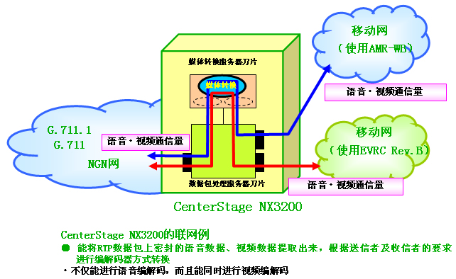 NX3200(以下簡稱「NX3200」)」上,內(nèi)置了行業(yè)首例運(yùn)營商級寬帶編解碼轉(zhuǎn)換功能。本裝置迅速對應(yīng)了ITU-T(注2)制定的國際標(biāo)準(zhǔn)G.711.1(注3)等寬帶編解碼器標(biāo)準(zhǔn),在運(yùn)用移動網(wǎng)、固定網(wǎng)的各種語音編解碼器及視頻編解碼器之間,能同時進(jìn)行大容量通信。本產(chǎn)品即日起開始銷往市場。