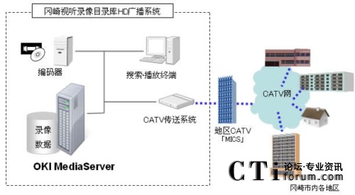 該系統(tǒng)以IP視頻傳輸系統(tǒng)“OKI MediaServer”為基礎(chǔ),是采用支持HD編碼裝置的錄像目錄庫系統(tǒng)。通過簡(jiǎn)單的GUI操作可以把編制成目錄的圖像制作成電視廣播節(jié)目并通過CATV電視臺(tái)播放。