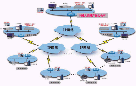 中國(guó)人民財(cái)產(chǎn)保險(xiǎn)股份有限公司,是中國(guó)內(nèi)地最大的非壽險(xiǎn)公司,香港證交所上市公司。經(jīng)過50多年的發(fā)展,中國(guó)人保財(cái)險(xiǎn)公司已經(jīng)發(fā)展成為網(wǎng)點(diǎn)遍布全國(guó)31個(gè)省市區(qū),共有營(yíng)業(yè)機(jī)構(gòu)4000余個(gè)的大型商業(yè)公司。為提高辦公效率,降低差旅成本,中國(guó)人保財(cái)險(xiǎn)公司決定建設(shè)覆蓋從總公司、省分公司到地市分公司的視頻會(huì)議系統(tǒng),項(xiàng)目總?cè)萘窟_(dá)600多個(gè)節(jié)點(diǎn),采用兩級(jí)級(jí)連方式組網(wǎng),要求系統(tǒng)具備視頻、音頻、數(shù)據(jù)交互功能,。