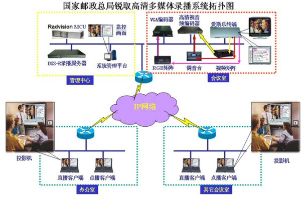 國(guó)家郵政總局為國(guó)家政府機(jī)構(gòu),主要負(fù)責(zé)郵政業(yè)的發(fā)展戰(zhàn)略、發(fā)展規(guī)劃和有關(guān)政策等諸多職責(zé)。由于機(jī)構(gòu)的特殊性,一些政策、法規(guī)、信息傳播、突發(fā)事件等日常工做必須及時(shí)、準(zhǔn)時(shí)、快速、準(zhǔn)確來完成,所以建設(shè)了視頻會(huì)議系統(tǒng)。與此同時(shí),為了能夠更好、更準(zhǔn)確、更及時(shí)、更完整的把會(huì)議內(nèi)容所包括的相關(guān)信息及時(shí)傳播與記錄,也增加了可視化信息的傳播與記錄系統(tǒng):深圳銳取多媒體錄播系統(tǒng)。