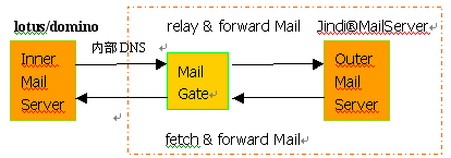 這種方案在有一定規(guī)模的企業(yè)比較典型,內(nèi)部網(wǎng)為L(zhǎng)otus/domino或Exchange的群件系統(tǒng),為內(nèi)部用戶提供smtp, pop3