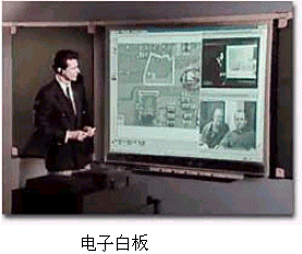 電子白板是經(jīng)常用來輔助視頻會議數(shù)據(jù)應(yīng)用的外設(shè),簡單的講,它是計算機的一個外圍設(shè)備或終端,它既可象傳統(tǒng)黑板一樣的使用,又可作為投影儀的幕布,同時它還是一個大型的電腦觸摸屏。電子白板與計算機串口相連,支持Netmeeting軟件,實現(xiàn)白板共享、異地實時互動。響應(yīng)速度快,分辨率高。