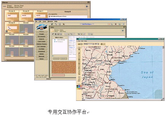 傳統(tǒng)的視頻會議廠商和其他WEB會議廠商都致力于開發(fā)新的網(wǎng)絡(luò)交互協(xié)作產(chǎn)品,如POLYCOM公司的WEB OFFICE,美國EZENIA公司的InfoWorkSpace和美國WebEx公司的Meeting Center都屬于此類產(chǎn)品。這類產(chǎn)品可以單獨使用,也可以和視頻會議系統(tǒng)結(jié)合,為用戶提供虛擬的協(xié)作辦公環(huán)境。系統(tǒng)功能強大,一般提供語音/文字交談,即時信息,公告牌,文本處理,白板,屏幕共享,文件庫管理,投票等功能,并具有完善的數(shù)據(jù)加密和身份識別能力,完全滿足一般部門和企業(yè)網(wǎng)上協(xié)作辦公、培訓(xùn)的需要。